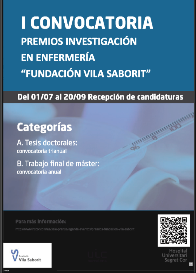La Fundació Vila Saborit, junt amb l'Hospital Universitari Sagrat Cor i la Universitat Internacional de Catalunya (UIC) han convocat els primers Premis de Recerca en Infermeria 'Fundació Vila Saborit' per a reconèixer a joves investigadors.