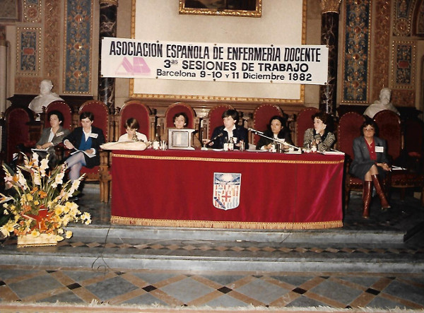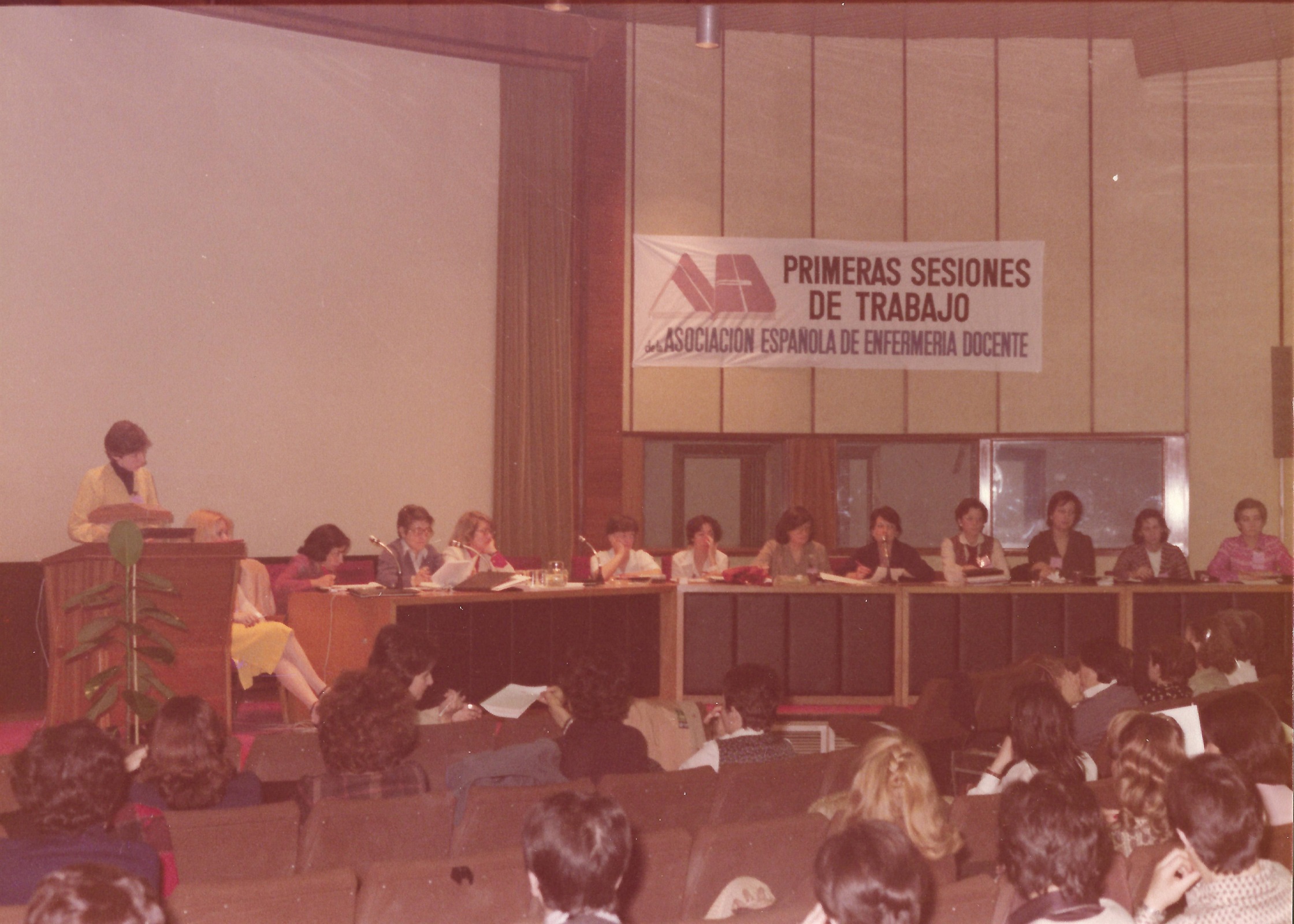 Primeres sessions de treball de l'Asociación Española de Enfermería Docente (AEED) a Madrid. A la imatge, totes les sòcies fundadores.