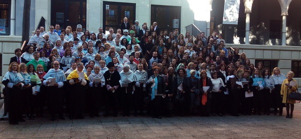 Acte d'investidura de Doctora honoris causa de Rosamaria Alberdi a la Universidad de Murcia, al 2016. Alberdi ha estat la primera infermera espanyola reconeguda amb el màxim guardó universitari a Espanya.